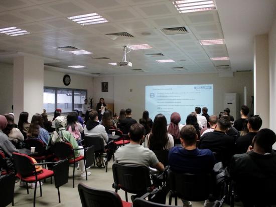 İnsan Kaynakları Uzmanı Sevgi Pehlivan ve İş Sağlığı ve Güvenliği Uzmanı Oğuzhan Karakaya ise Bellona’nın çalışan odaklı yönetim anlayışı ve iş güvenliği standartları hakkında öğrencilere bilgilendirme yaptı.